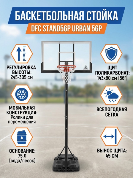 Мобильная стойка для стритбола DFC STAND56P - ДоставкаДоставка по Москве: бесплатно, 1-2 дняДоставка по Санкт-Петербургу: бесплатно, 2-3 дня Доставка по России: стоимость уточняйте у оператора. Мобильная стойка для стритбола DFC STAND56P - Отзывы4.8