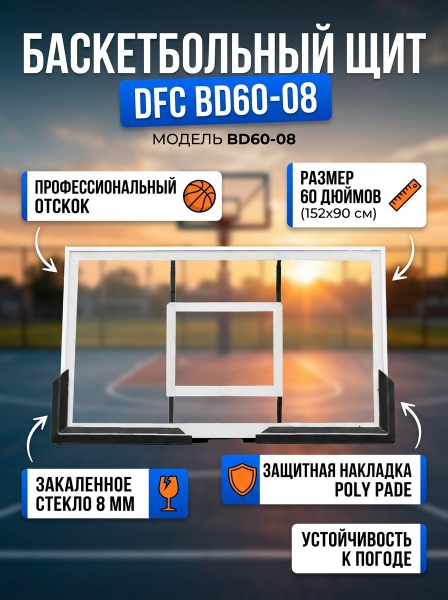Баскетбольный щит DFC BD60-08 152x90см - БрендDFC – бренд, поставляющий на рынок специализированные приборы и оборудование для красоты и здоровья.