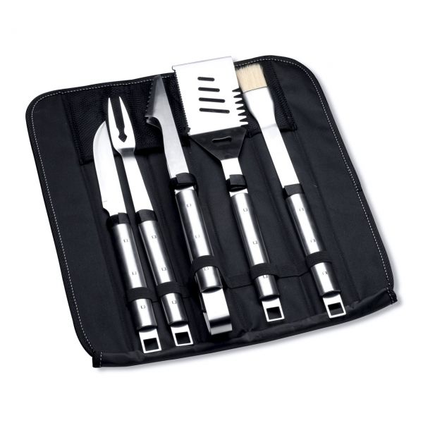 Набор для барбекю в сумке BergHOFF Cubo 6 пр. - ОписаниеПолный набор инструментов сделает любой ужин на свежем воздухе успешным событием. Маленькая мягкая кисть идеальна для намазывания и нанесения маринадов. Вилка и нож для мяса тоже представлены в линии барбекю. Эти инструменты пригодятся для нарезания запеченного мяса или переворачивания и нарезания овощей на гриле.
