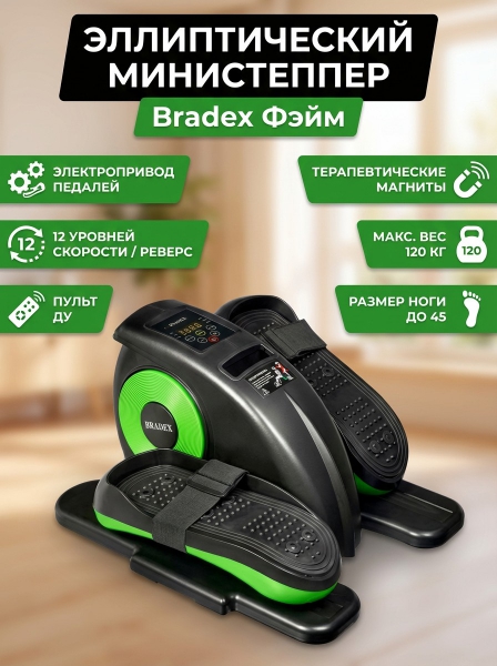 Эллиптический министеппер Bradex Фэйм SF - ОписаниеЭллиптический министеппер c электроприводом педалей ФЭЙМ – уникальный инновационный тренажер, предназначенный для активной тренировки нижней части тела. Он обладает множеством удивительных характеристик, которые помогут сделать тренировку эффективной и комфортной.