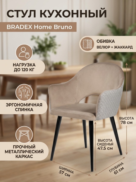 Стул с жаккардом BRADEX HOME Bruno латте - БрендСтрана бренда: Россия Премиальность бренда:Стул с жаккардом BRADEX HOME Bruno латте - Характеристики