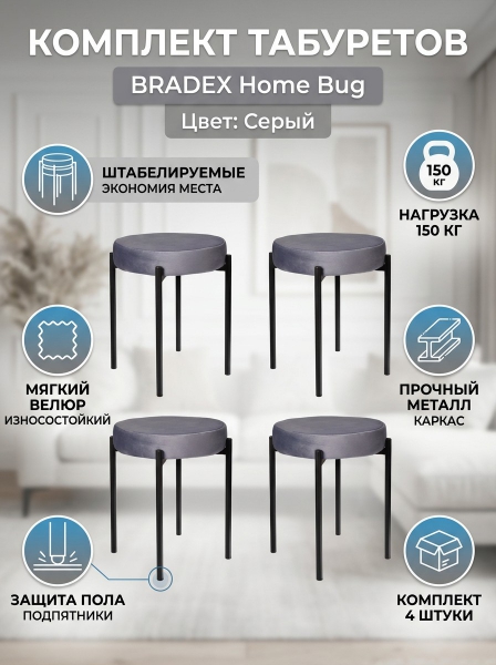 Комплект стульев-табуретов Bradex Home Bug - БрендСтрана бренда: Россия Премиальность бренда:Комплект стульев-табуретов Bradex Home Bug - Характеристики
