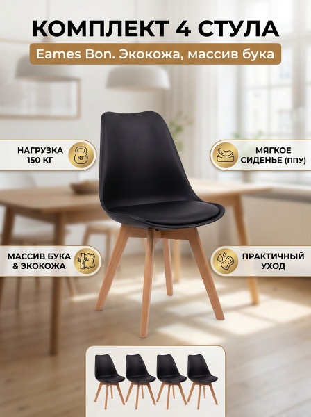 Комплект из 4-х стульев Bradex Home Eames Bon - ОписаниеСтул Eames Bon - это мебель с чрезвычайно оригинальной формой, которая не оставит вас равнодушным. Сиденье выполнено из литого полипропилена обтянутого эко кожей, ножки и опоры из массива бука. Дополнительный комфорт придаёт мягкая вставка в сиденье из ППУ, для тех, кто хочет больше комфорта. Стул Eames Bon создан не только для жилых помещений, он также станет отличным выбором для ресторана, кафе, отеля или офиса.