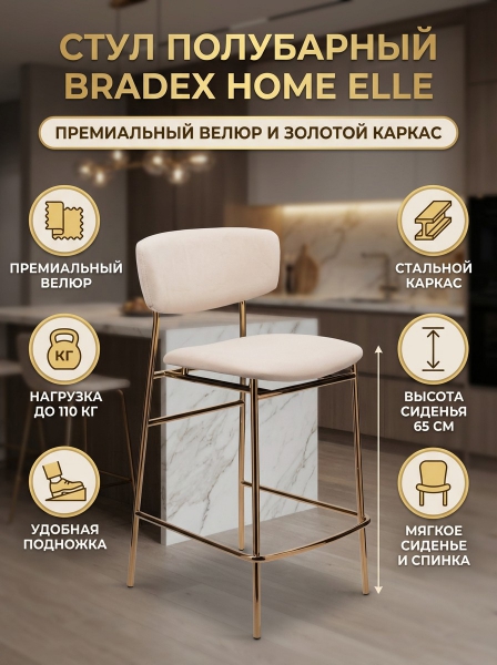Стул полубарный BRADEX HOME Elle кремовый с золотыми ножками - БрендСтрана бренда: Россия Премиальность бренда:Стул полубарный BRADEX HOME Elle кремовый с золотыми ножками - Характеристики