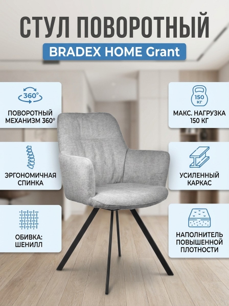 Стул на поворотном механизме BRADEX HOME Grant шенилл - Преимущества