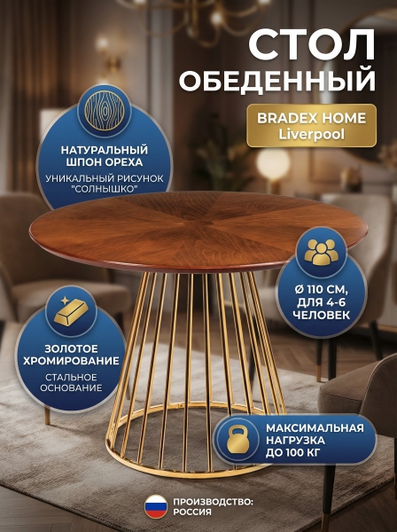 Стол Bradex Home Liverpool 110 см шпон орех "солнышко" - БрендСтрана бренда: Россия Премиальность бренда:Стол Bradex Home Liverpool 110 см шпон орех "солнышко" - Характеристики