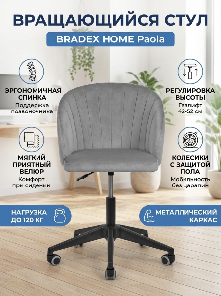 Стул вращающийся на колесиках BRADEX HOME Paola темно-серый - БрендСтрана бренда: Россия Премиальность бренда:Стул вращающийся на колесиках BRADEX HOME Paola темно-серый - Характеристики