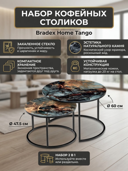 Набор кофейных столиков Bradex Home Tango космический - БрендСтрана бренда: Россия Премиальность бренда:Набор кофейных столиков Bradex Home Tango космический - Характеристики