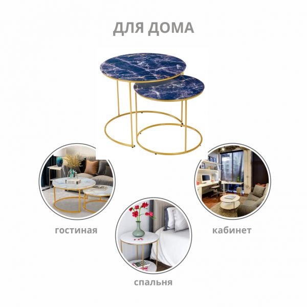 Набор кофейных столиков Bradex Home Tango темно-синий - ОписаниеЭлегантная пара кофейных столиков Tango станет изящным дополнением любой гостинной или даже спальни. Рисунок на столешнице имитирующий натуральный мрамор завораживает и притягивает взгляд. Столики можно расположить парой или расставить по отдельности.