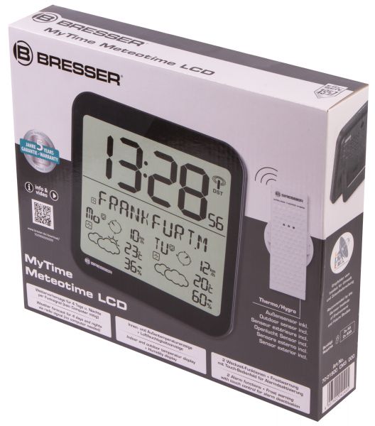 Часы настенные Bresser MyTime Meteotime LCD черные - ОписаниеЧасы Bresser MyTime Meteotime LCD можно повесить в любом просторном помещении, так как они имеют особо крупную индикацию. Высота цифр времени составляет 6,5 см, поэтому все видно четко и ясно даже с большого расстояния. Часы можно также ставить на специальную откидную подставку. Стильный внешний вид делает их прекрасным аксессуаром, но также это и многофункциональный прибор.