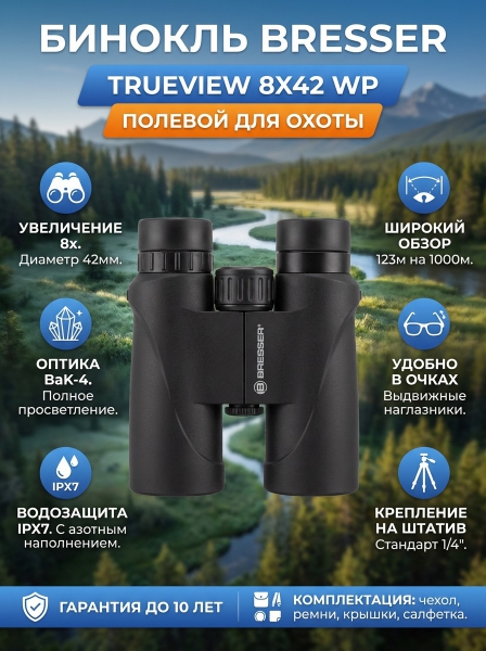 Бинокль водозащищенный Bresser TrueView 8x42 WP - БрендСтрана бренда: Германия Премиальность бренда:Бинокль водозащищенный Bresser TrueView 8x42 WP - Характеристики