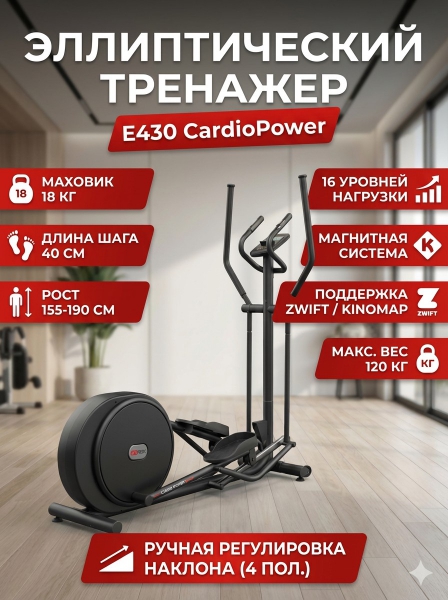 Эллиптический тренажер CardioPower E430 - ОписаниеСомневаетесь? - Посмотрите рейтинг ТОП-10 по категории «Домашние эллиптические тренажеры»Эллиптический тренажер E430