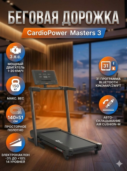 Беговая дорожка CardioPower Masters 3 - БрендСтрана бренда: Германия Премиальность бренда:Беговая дорожка CardioPower Masters 3 - Характеристики