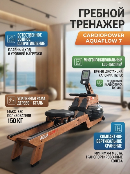 Гребной тренажер Cardiopower AquaFlow 7 - ОписаниеГребной тренажер CardioPower AquaFlow 7.