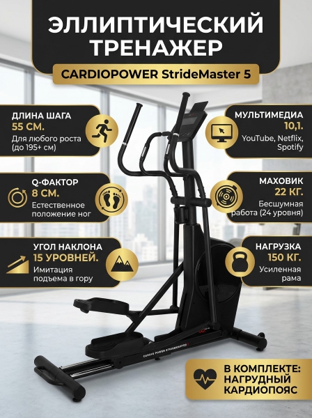 Эллиптический тренажер CardioPower StrideMaster 5 - ДоставкаДоставка по Москве: бесплатно, 1-2 дняДоставка по Санкт-Петербургу: бесплатно, 2-3 дня Доставка по России: стоимость уточняйте у оператора. Эллиптический тренажер CardioPower StrideMaster 5 - Отзывы0.0