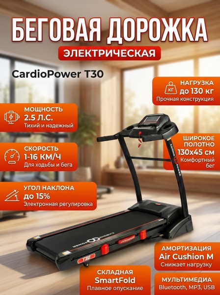 Электрическая беговая дорожка CardioPower T30 - ДоставкаДоставка по Москве: бесплатно, 1-2 дняДоставка по Санкт-Петербургу: бесплатно, 2-3 дня Доставка по России: стоимость уточняйте у оператора. Электрическая беговая дорожка CardioPower T30 - Отзывы5.0