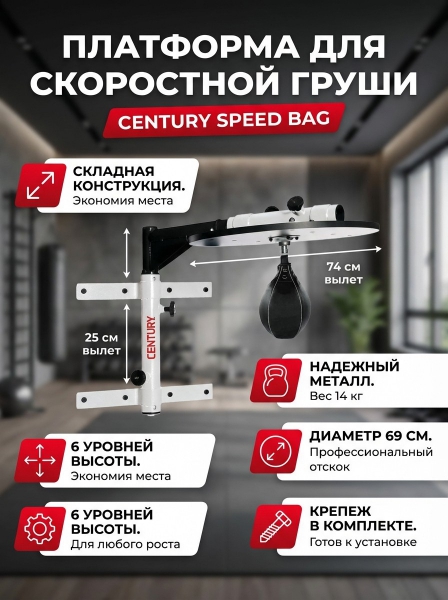 Складная платформа для груши Century Speed Bag 108683 - БрендМиссия компании Century – предоставить каждому человеку максимальные преимущества от занятий боевыми искусствами. Эта миссия базируется на убеждении, что боевые искусства способны кардинально изменить нашу жизнь.