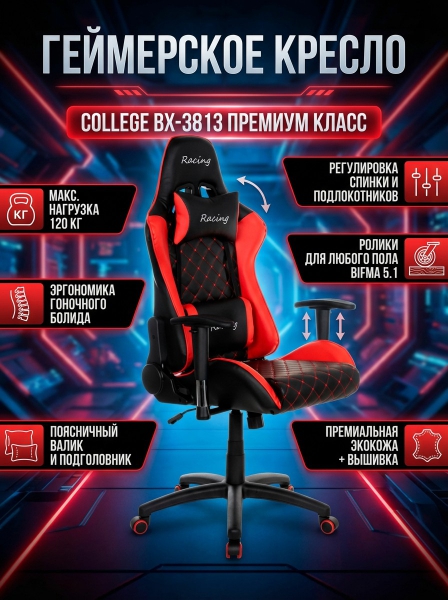 Геймерское кресло College BX-3813 - БрендСтрана бренда: Россия Премиальность бренда:Геймерское кресло College BX-3813 - Характеристики