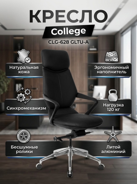 Кресло College CLG-628 GLTU-A Black - ОписаниеСомневаетесь? - Посмотрите рейтинг ТОП-10 по категории «Ортопедические кресла»Кресло College CLG-628 GLTU-A Black - это кресло руководителя премиум класса ультрасовременного дизайна. Натуральная кожа(из натуральной кожи выполнены лицевые поверхности обивки кресла, боковые и тыльная сторона выполнены из экокожи), подлокотники c накладками, крестовина - литой алюминий, механизм наклона кресла с фиксацией в 4-х положениях и регулировкой под вес сидящего, наполнитель кресла формованный ППУ. Кресло руководителя College CLG-628 GLTU-A Black - это кресло для тех, кто неравнодушен к новым веяниям в дизайне офисной мебели.