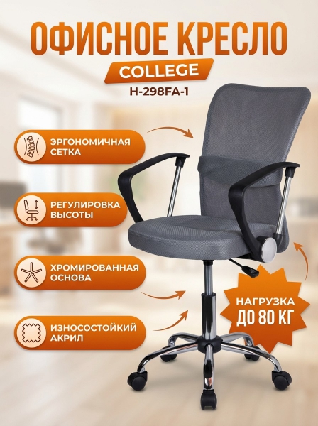 Офисное кресло College H-298FA-1 - ОписаниеСомневаетесь? - Посмотрите рейтинг ТОП-10 по категории «Ортопедические кресла»Легкой и изящный вид креслу оператора College H-298FA-1-2 придает спинка, выполненная из высокопрочной акриловой сетки, которая обеспечивает поддержку каждого участка спины.
