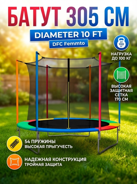Батут с внутренней защитной сеткой DFC 10FT MutiColor - Обзор ТОП-10 лучших батутов 2025 🏆: Обзор и рейтинг