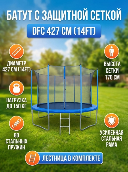 Батут с внутренней защитной сеткой DFC 14FT blue - Обзор ТОП-10 лучших батутов 2025 🏆: Обзор и рейтинг