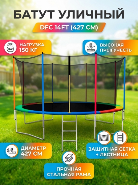 Батут с внутренней защитной сеткой DFC 14FT MutiColor - Обзор ТОП-10 лучших батутов 2025 🏆: Обзор и рейтинг