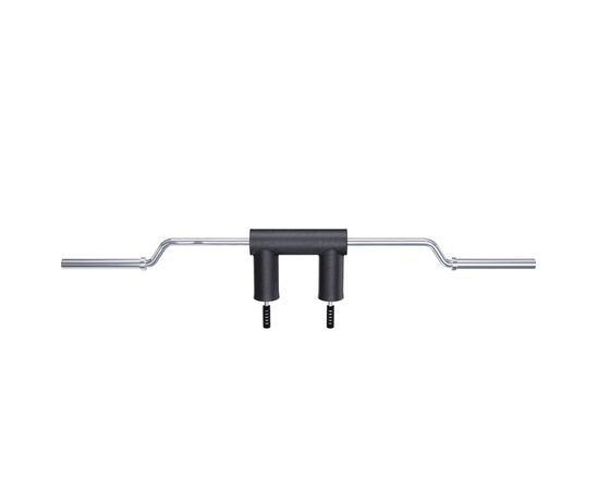 Гриф позволяет выдерживать нагрузку до 681 кг. Изготовлен он из высококачественной стали, обеспечивающей комфорт и безопасность во время тренировок. Его особая П-образная форма способствует равномерному распределению нагрузки на мышцы ног, поддерживает оптимальное положение тела и снижает риск получения травм.
