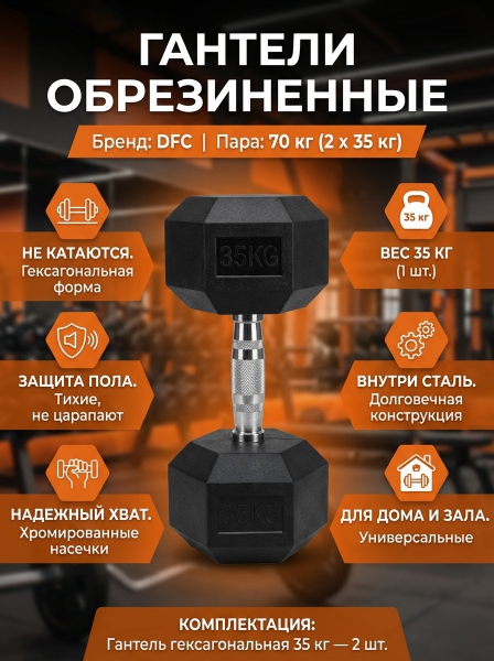 Гантели обрезиненные (пара) DFC DB001-35 - Преимущества