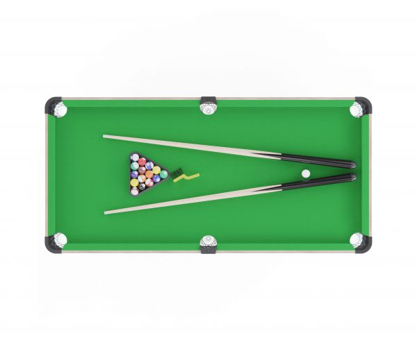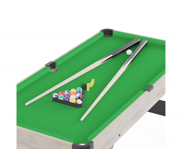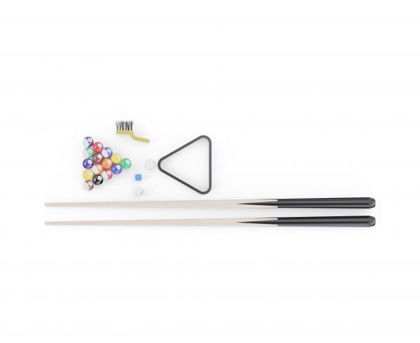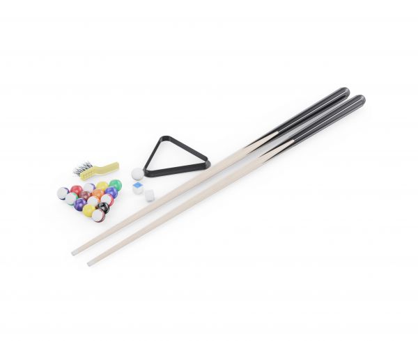В набор входят все необходимые принадлежности: 2 кия, комплект шаров, 2 мелка, треугольник для расстановки и щётка для ухода за покрытием. Можно сразу начинать играть без дополнительных покупок.