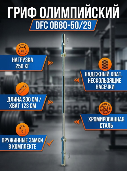 Гриф прямой DFC OB80-50/29 - ДоставкаДоставка по Москве: бесплатно, 1-2 дняДоставка по Санкт-Петербургу: бесплатно, 2-3 дня Доставка по России: стоимость уточняйте у оператора. Гриф прямой DFC OB80-50/29 - Отзывы5.0