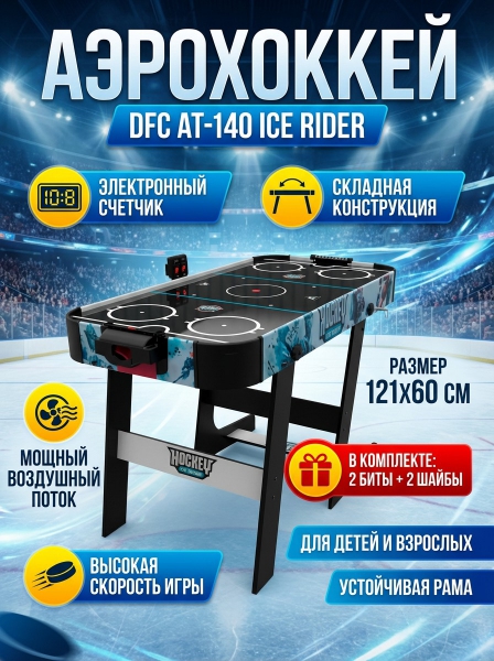 Игровой стол - аэрохоккей DFC AT-140 - ОписаниеСомневаетесь? - Посмотрите рейтинг ТОП-10 по категории «Аэрохоккей»Аэрохоккей - это не просто игра, это настоящий спорт, который развивает реакцию, координацию движений и стратегическое мышление. Теперь вы сможете наслаждаться этой увлекательной игрой прямо у себя дома, скрашивая свой досуг и устраивая настоящие турниры с друзьями!