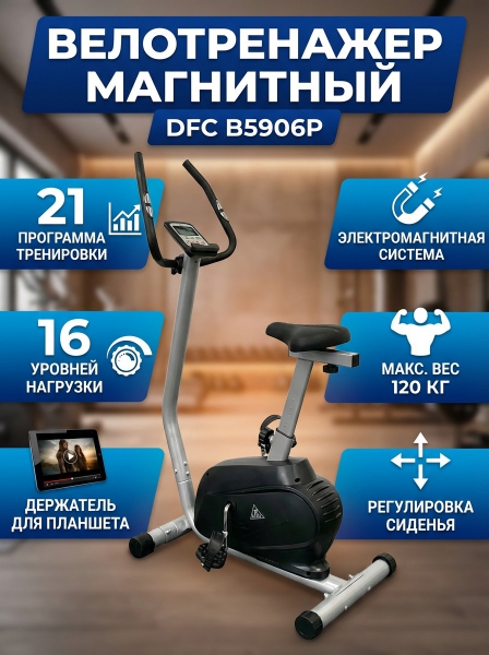 Велотренажер магнитный DFC B5906P - ОписаниеСомневаетесь? - Посмотрите рейтинг ТОП-10 по категории «Домашние велотренажеры»Вертикальный велотренажер B5906P идеально подходит для домашнего использования. Оснащен электромагнитной системой нагрузки с электронной регулировкой с консоли.