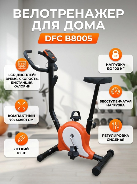 Велотренажер механический DFC B8005 - ОписаниеСомневаетесь? - Посмотрите рейтинг ТОП-10 по категории «Домашние велотренажеры»Домашний тренажер B8005 для всей семьи. Вертикальный механический тренажер с ременной системой нагружения. Сидение регулируется в вертикальной плоскости, что позволяет подобрать удобную посадку для тренировки.
