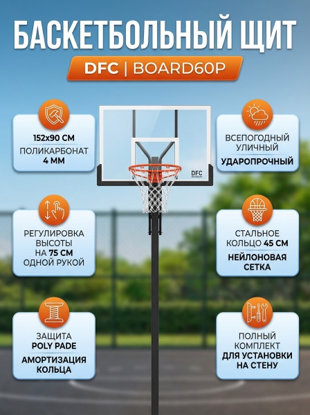 Баскетбольный щит для стритбола DFC BOARD60P - Обзор ТОП-10 лучших баскетбольных щитов 2025 🏆: Обзор и рейтинг