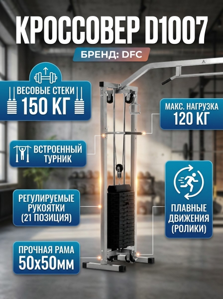 Компания основана в Китае – родине многих организаций, работающих в сфере высоких технологий по производству спортивного оборудования. С 2006 года компания вышла на мировой рынок и получила международный сертификат ISO, подтверждающий безопасность в сфере производства. В ассортименте фирмы вы найдете тренажеры, спортивные аксессуары, массажеры и лимфодренажные аппараты, аспираторы, приборы массажного давления и многое другое. Цель компании – сделать мир лучше и красивее с помощью собственной продукции! Страна бренда: Россия Премиальность бренда:Кроссовер с весовыми стеками DFC D1007 - Характеристики