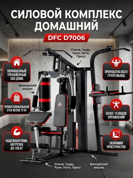 Компания основана в Китае – родине многих организаций, работающих в сфере высоких технологий по производству спортивного оборудования. С 2006 года компания вышла на мировой рынок и получила международный сертификат ISO, подтверждающий безопасность в сфере производства. В ассортименте фирмы вы найдете тренажеры, спортивные аксессуары, массажеры и лимфодренажные аппараты, аспираторы, приборы массажного давления и многое другое. Цель компании – сделать мир лучше и красивее с помощью собственной продукции! Страна бренда: Россия Премиальность бренда:Посмотреть все многофункциональные тренажеры-мультистанции DFC (19) Силовой комплекс DFC D7006 - Характеристики