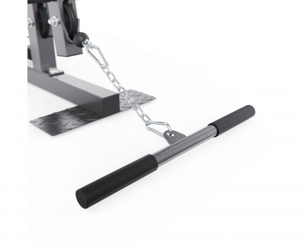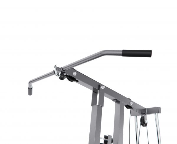 Многофункциональный силовой комплекс позволяет выполнять упражнения на грудь, спину, плечи, руки, пресс и ноги. В оснащение входят верхняя и нижняя тяга, а также тренажер «бабочка», что значительно расширяет возможности тренировок. Нижний валик предназначен для фиксации ног и выполнения упражнений на разгибание и сгибание, а также обеспечивает устойчивое положение тела при работе с верхней тягой.