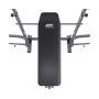 Максимальная нагрузка на стойки для штанги равна 100 кг, а расстояние между стойками 76 см. Скамья также оснащена ручным рычагом с максимальной нагрузкой до 40 кг и нагрузкой на рычаг для валиков до 80 кг. Весовые пластины не входят в комплект, но их можно приобрести отдельно.