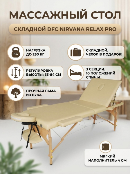 Массажный стол беж DFC Nirvana Relax Pro TS3021_B2 - Обзор ТОП-10 лучших столов для массажа 2025 🏆: Обзор и рейтинг