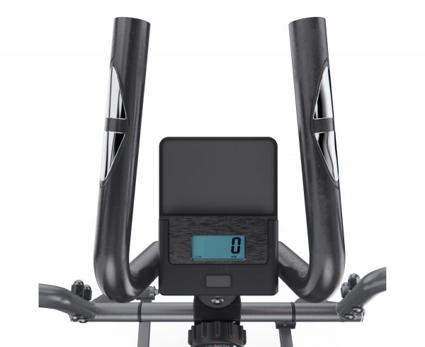 Тренажёр оснащён монохромным LCD-дисплеем, который отображает ключевые показатели тренировки: сканирование, время, скорость, дистанция, общая дистанция, калории и пульс. Для удобного отслеживания за состоянием организма во время тренировки на поручнях установлены сенсорные датчики пульса. Для работы дисплея используются две батарейки типа AAA, которые входят в комплект.