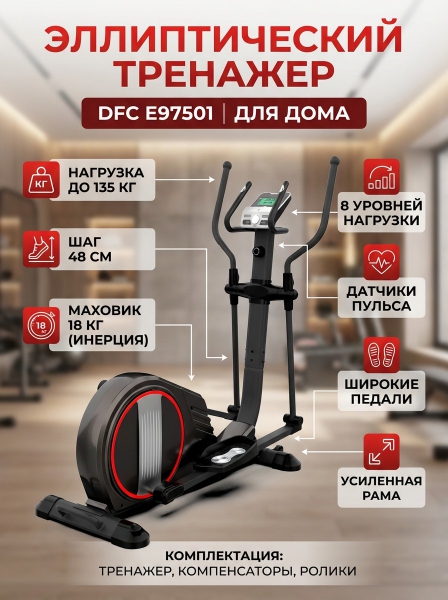Домашний эллиптический тренажер DFC E97501 - ДоставкаДоставка по Москве: бесплатно, 1-2 дняДоставка по Санкт-Петербургу: бесплатно, 2-3 дня Доставка по России: стоимость уточняйте у оператора. Домашний эллиптический тренажер DFC E97501 - Отзывы0.0