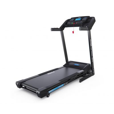 Размер бегового полотна составляет 142x45 см, что делает его идеальным для пользователей различной комплекции и возраста. Толщина бегового полотна 1,6 мм обеспечивает комфорт и долговечность использования. Угол наклона полотна меняется электронно с помощью консоли от 0 до 15°.