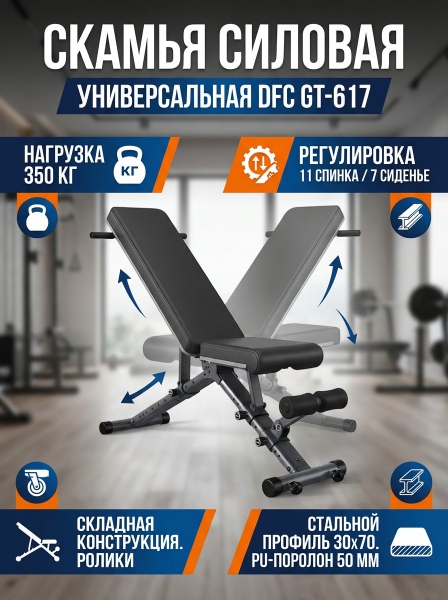Cкамья силовая универсальная DFC GT-617 - Обзор ТОП-10 лучших универсальных скамей 2025 🏆: Обзор и рейтинг