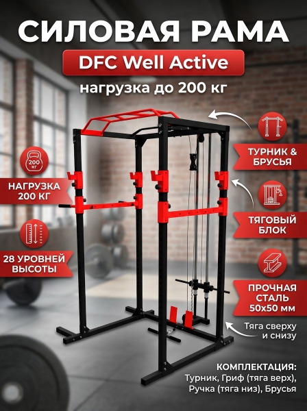 Рама силовая и тяга сверху DFC JH-D08 - ОписаниеРама силовая для тяги сверху и снизу DFC Well Active в ярком красно-черном цвете. Для данного оборудования используйте диски с отверстием 26 мм.