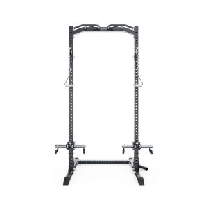 Держатели для штанги и страховочные держатели регулируются по высоте и выдерживают до 200 кг. Рукоятки обеспечивают удобный хват и стабильность во время выполнения упражнений.