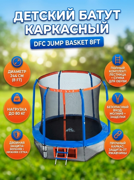 Батут с сеткой DFC JUMP BASKET 8FT-JBSK-B - ДоставкаДоставка по Москве: бесплатно, 1-2 дняДоставка по Санкт-Петербургу: бесплатно, 2-3 дня Доставка по России: стоимость уточняйте у оператора. Батут с сеткой DFC JUMP BASKET 8FT-JBSK-B - Отзывы5.0