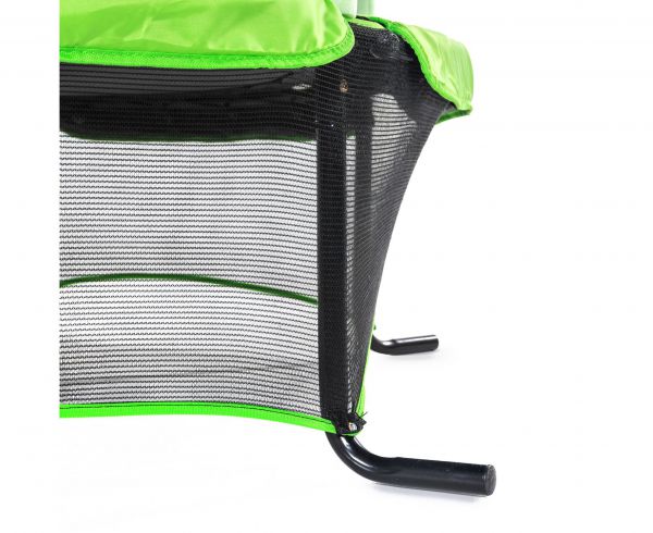 DFC Jump Kids 55INCH-JD-G – детский батут, в котором особое внимание уделено безопасности пользователя. В набор входят две защитные сетки, вход оснащен наружной застежкой-молнией, чтобы ребенок гарантированно не смог выпасть.