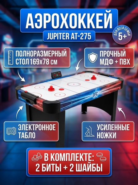 Игровой стол - аэрохоккей DFC Jupiter AT-275 - ДоставкаДоставка по Москве: бесплатно, 1-2 дняДоставка по Санкт-Петербургу: бесплатно, 2-3 дня Доставка по России: стоимость уточняйте у оператора. Игровой стол - аэрохоккей DFC Jupiter AT-275 - Отзывы5.0