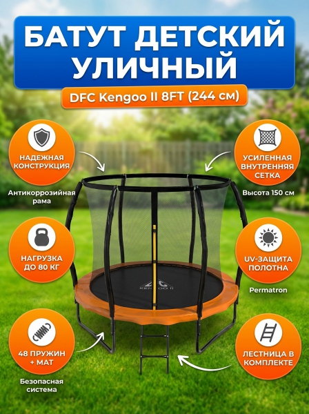 Батут с внутренней сеткой и лестницей DFC Kengoo II 8FT-BAS-BO - Преимущества